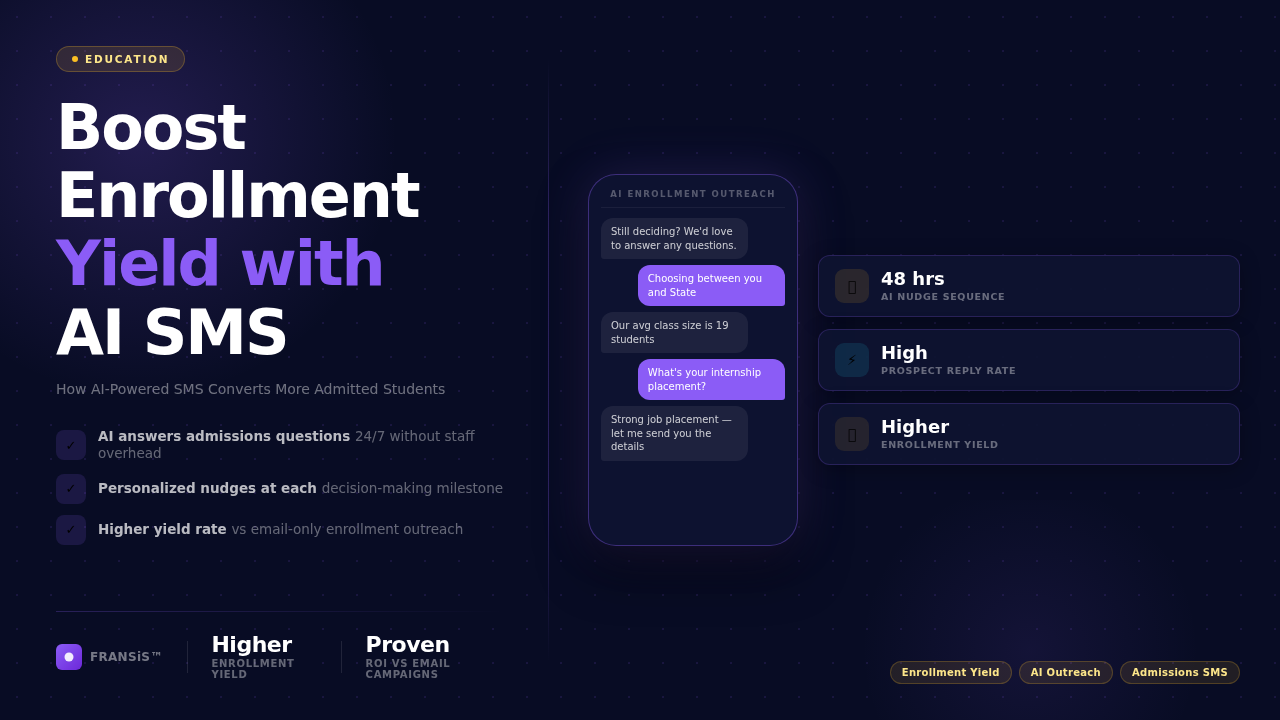 Universities using AI-driven text messaging see 34% higher enrollment completion rates and fewer summer melt losses.